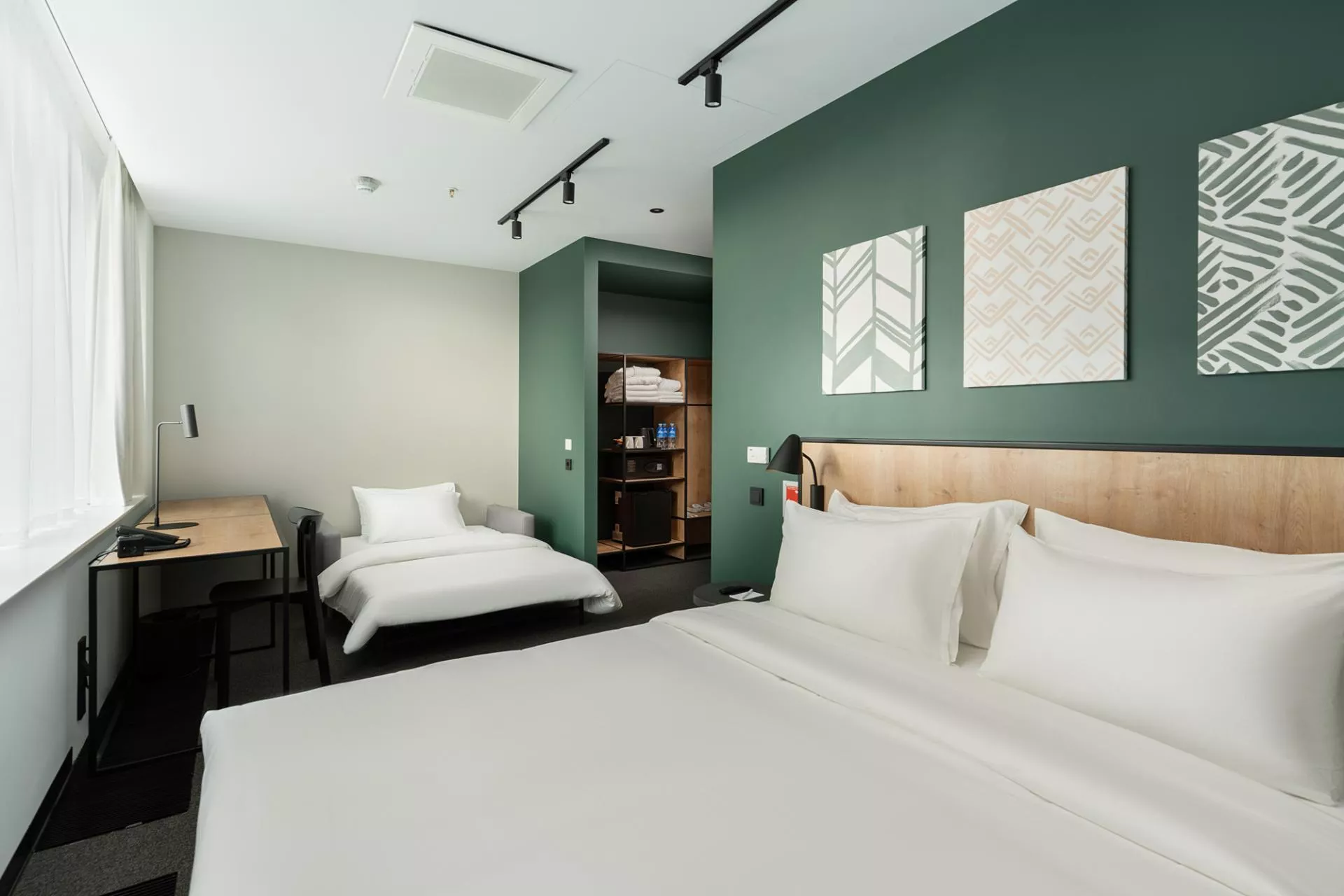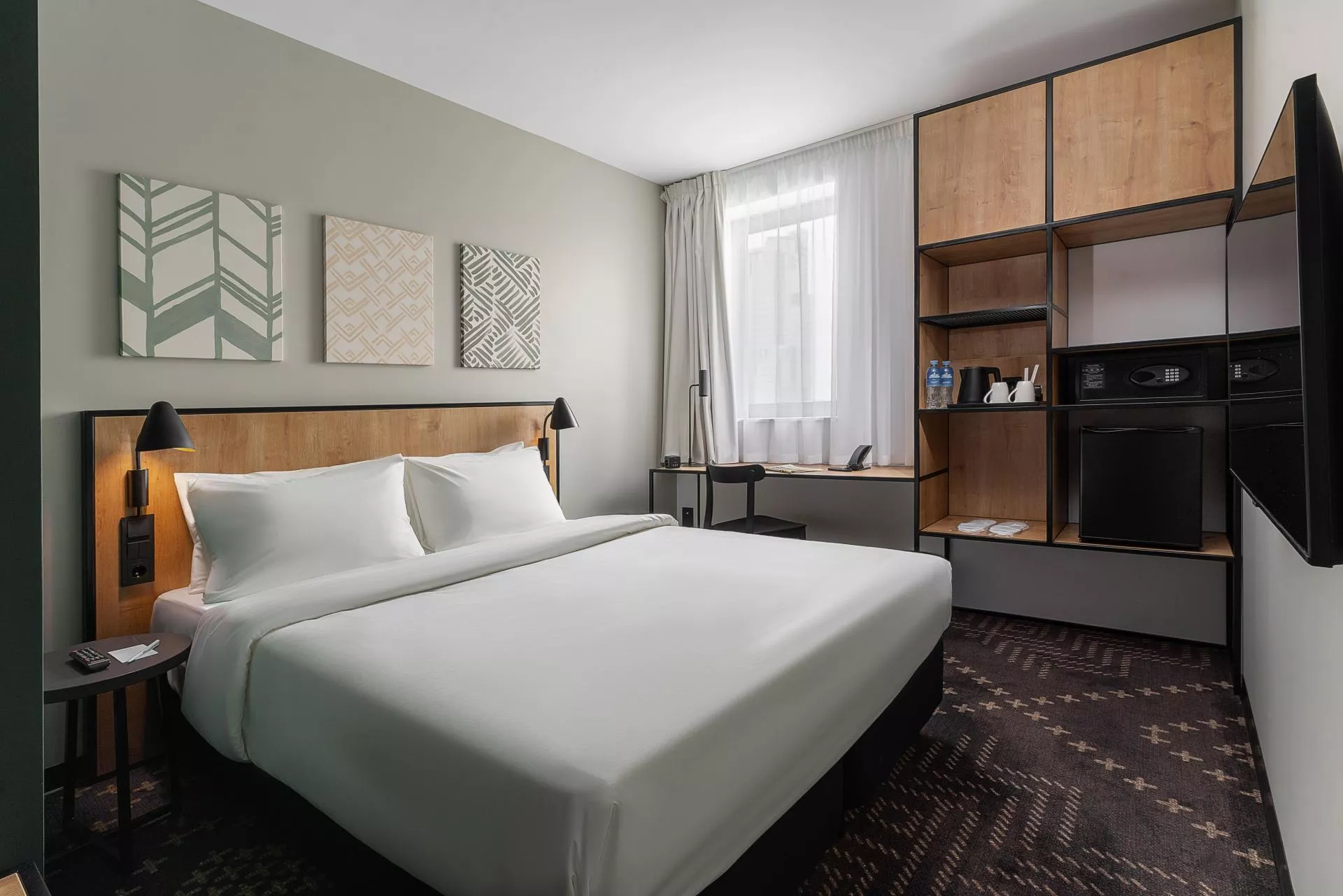 Номерной фонд включает 115 номеров категории «Стандарт» с двуспальной или двумя односпальными кроватями. В каждом номере предусмотрены кондиционер, телевизор, рабочая зона, чайная станция, сейф, фен, утюг и гладильная доска, плотные шторы и бесплатный интернет. Заезд – с 15:00, выезд – до 12:00.